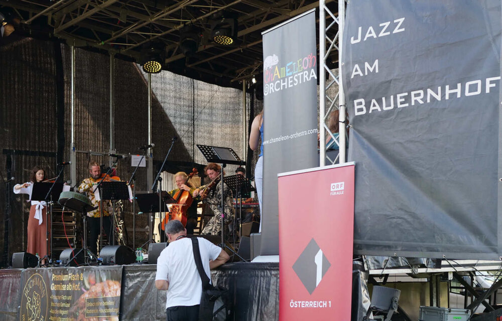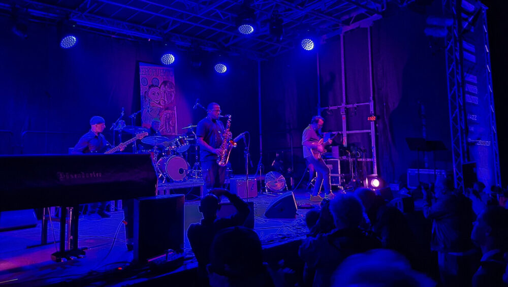 Hier nun ein kurzer Rückblick in Bildern auf das Bühnenprogramm am 18. Juli 2025, Open Air auf der Wiese. Ein Mitschnitt des Konzerts The Messthetics and James Brandon Lewis wird auf Ö1 / On stage, am 18. August 2025, um 19.30 Uhr gesendet.
