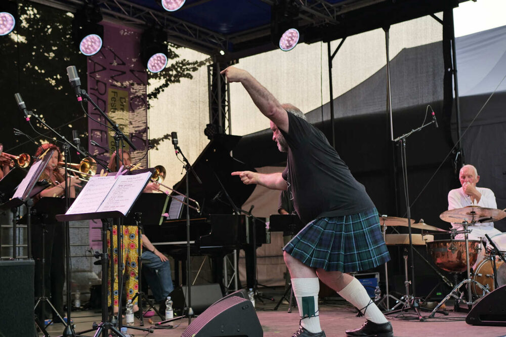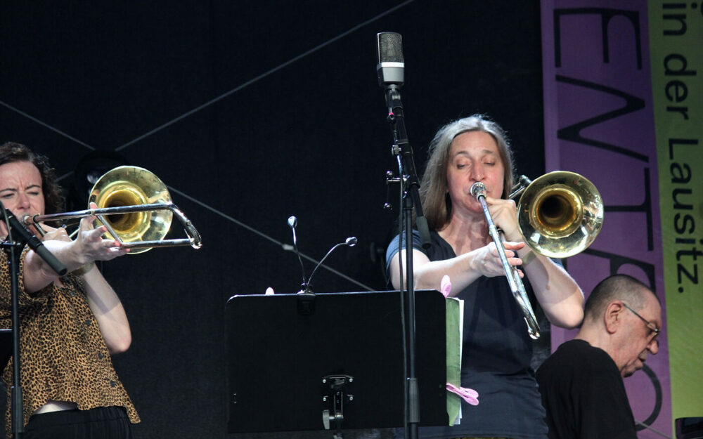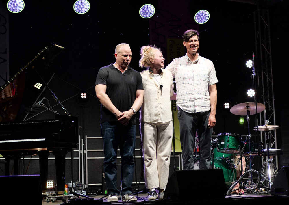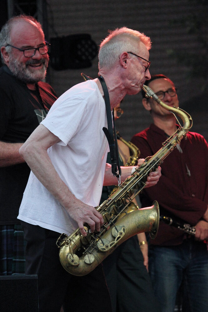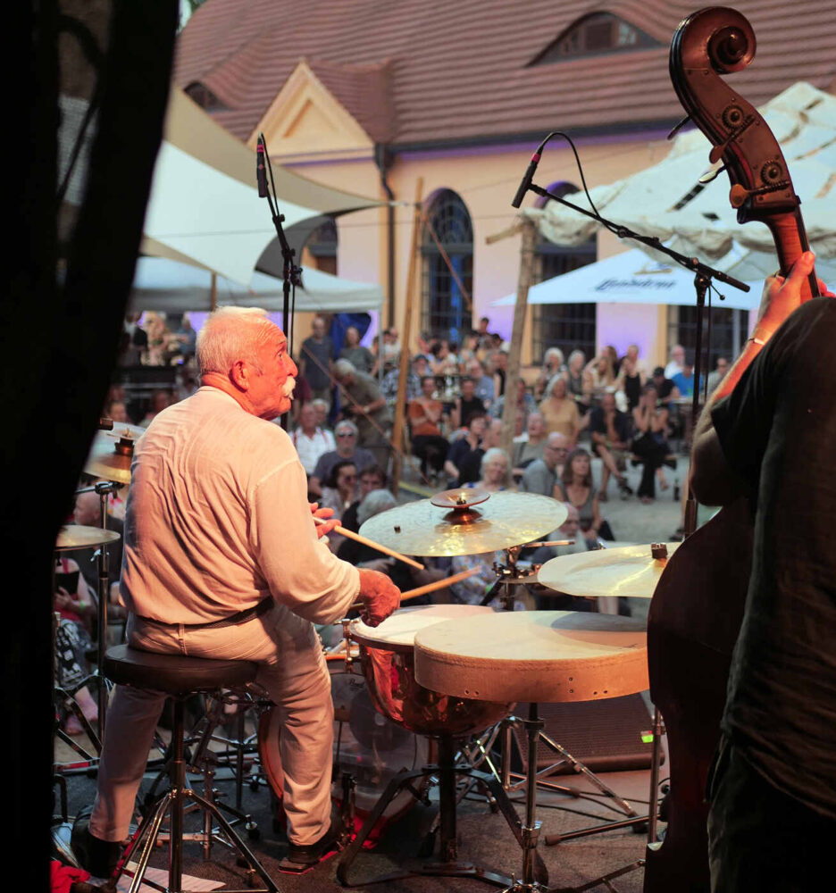 Zum zweiten Mal hat Marie Blobel nun das traditionsreiche Festival der Jazzwerkstatt kuratiert. Im vergangenen Jahr trat sie die Nachfolge ihres Vaters Ulli Blobel als Veranstalterin an. Unter dem Motto „Die Kunst der Freiheit – ein Festival zwischen Tradition und Wandel“ ist es ihr gelungen, diesmal 20 Konzerte auf mehreren Bühnen auf dem Gelände des historischen Hüttenwerks und zum Abschluss in der Stüler-Kirche zu präsentieren. Zum Auftakt des Festivals begeisterte das Big-Band-Projekt „Brother & Sisterhood“ des Schlagzeugers Günter Baby Sommer mit elf Musikerinnen und Musikern auf der Bühne. Offenbar ein gelungener Schachzug, denn bereits am Freitag war das Publikum zum Konzertplatz geströmt.