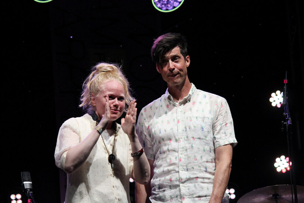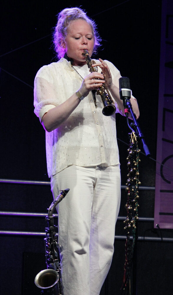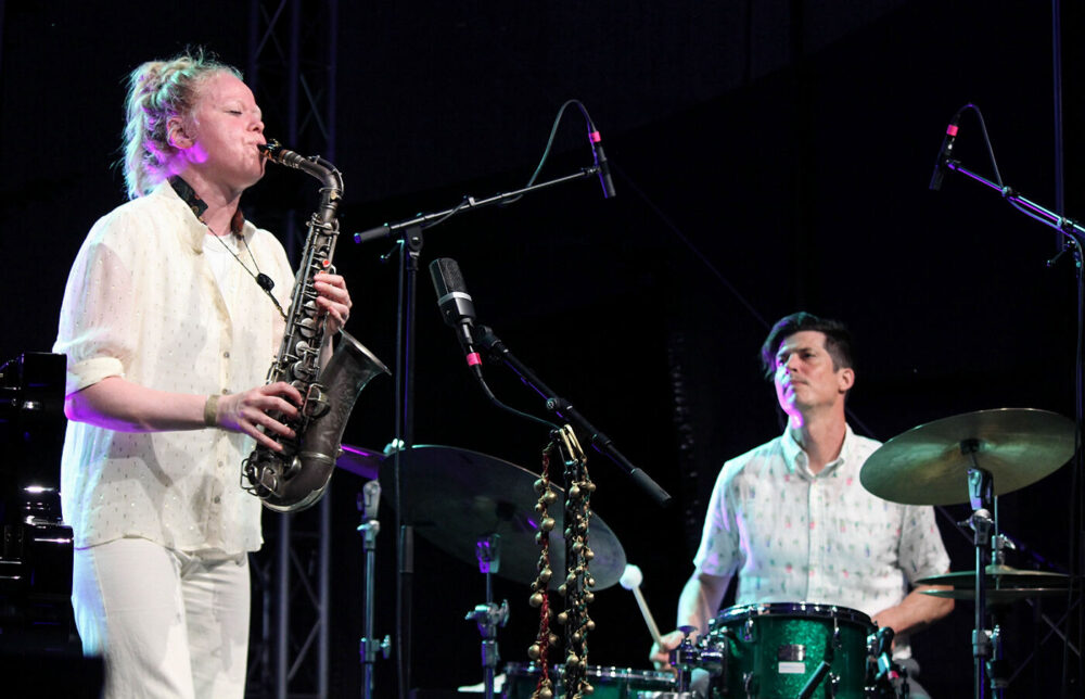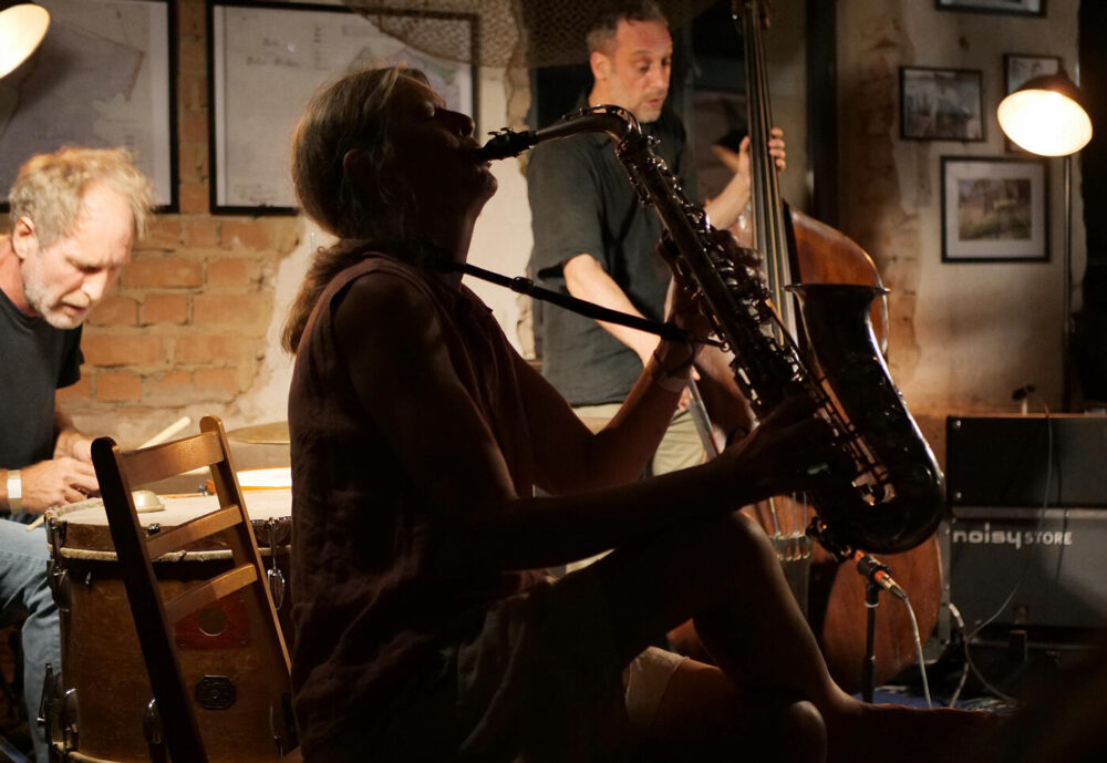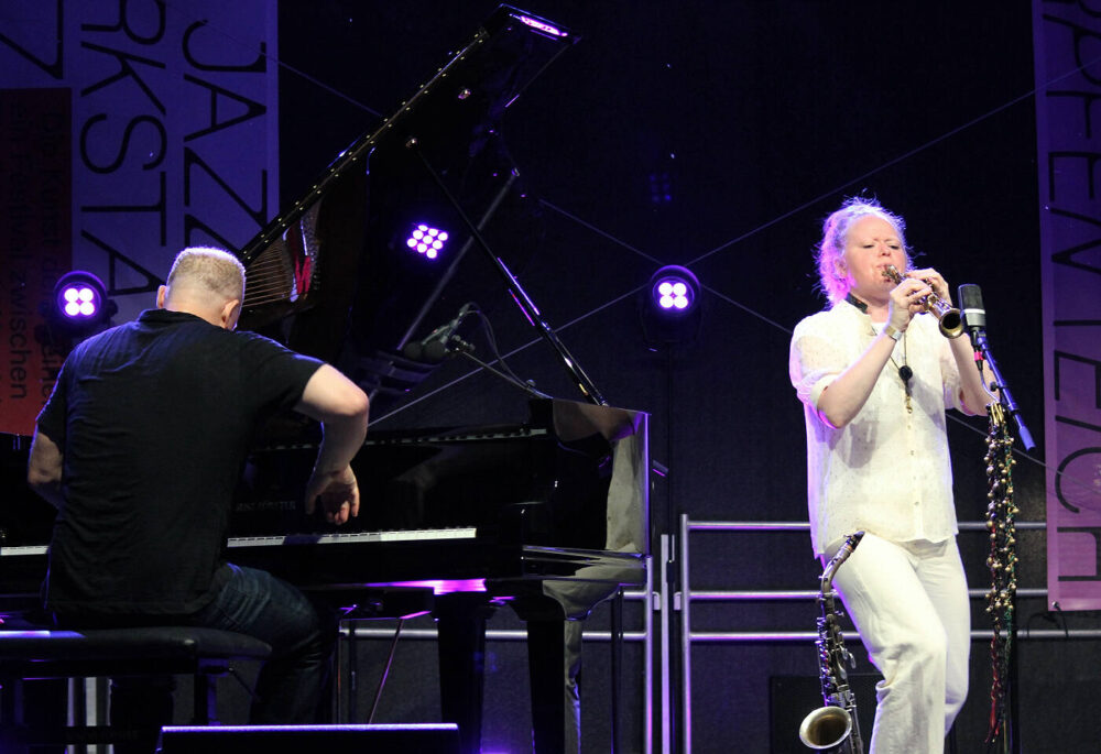 Mit „Weird of Mouth“ folgte auf der Hauptbühne das als Free-Jazz-Supergroup angekündigte Trio der Saxofonistin Mette Rasmussen mit Craig Taborn (Klavier) und Ches Smith (Schlagzeug). Improvisationen als Fest der Gegensätze – dem lässt sich nichts hinzufügen. Für manchen Festivalbesucher schien da schon der Höhepunkt und das Ziel der Anreise erreicht. Aber natürlich nicht – das Programm bot an den drei Festivaltagen einen dramaturgisch gelungenen Wechsel von Kontrasten. Sowohl vom musikalischen Angebot wie von den bespielten Orten her. Von der Hauptbühne Open Air ging es in die Hochofenhalle oder in die Werkstatt am Hüttenwerk. Die Werkstatt zu bespielen hat einen Bezug zum Namen des Festivals – den die Begründer Ulli Blobel und Peter „Jimi“ Metag (1950 – 2013) mit ihren Veranstaltungen in den 1970/80er Jahren kreativ umgesetzt hatten. Darauf bezieht sich auch Marie Blobel: Die Werkstatt als Raum für musikalische Experimente und Erst-Begegnungen.
