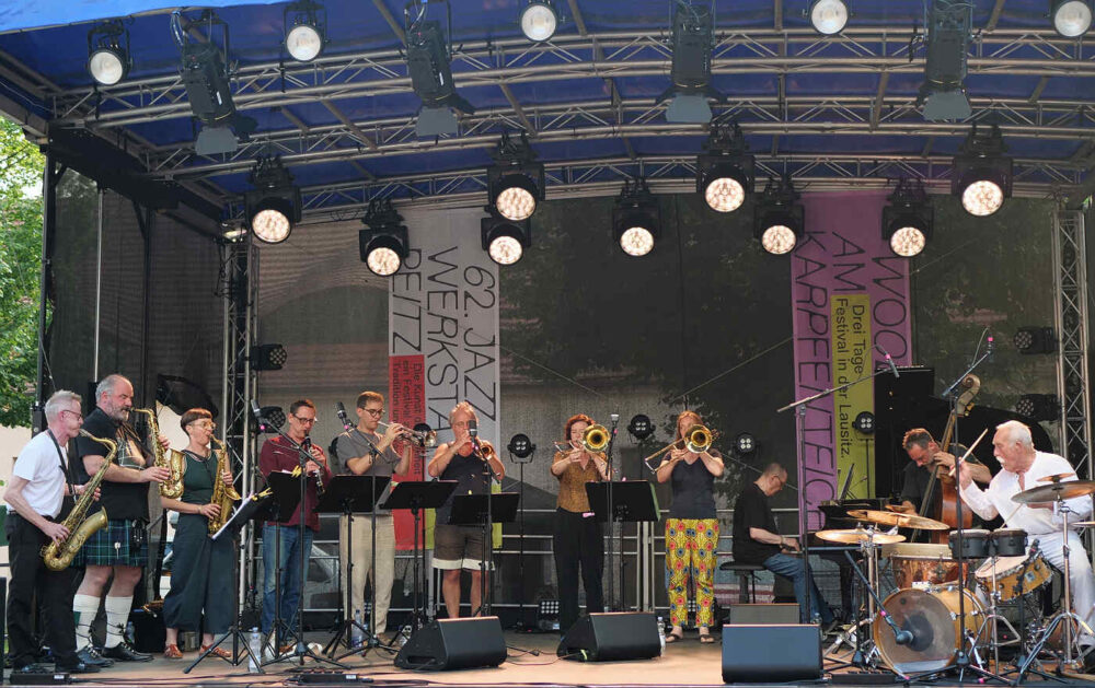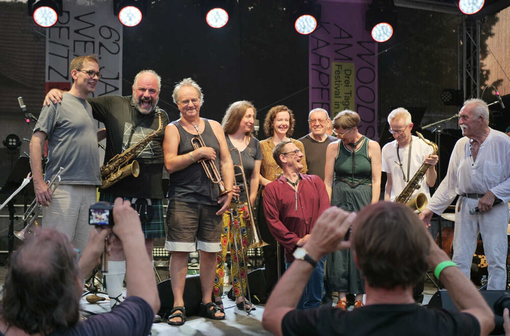Marie Blobel ist es gelungen, mit 15 Helfern und Volonteers die drei Festivaltage organisatorisch abzusichern und eine entspannte Atmosphäre für die Besucher zu schaffen. So mancher verabredete sich mit anderen Jazzfreunden schon für das nächste Festival. Die 63. Jazzwerkstatt Peitz wird vom 14. bis 16. August 2026 stattfinden. Dann heißt es wieder: Woodstock am Karpfenteich. Und vielleicht wird dann auch wieder getanzt – so wie dieses Mal. Das überraschte doch den langjährigen Festivalbesucher. Dass in Peitz beim Jazz getanzt wurde, gehört nicht zu den überlieferten Geschichten. Neue Traditionen dürfen gern begründet werden – auch von einem Publikum, unter das sich mehr jüngere Zuhörer mischen. Das war in diesem Jahr unübersehbar.