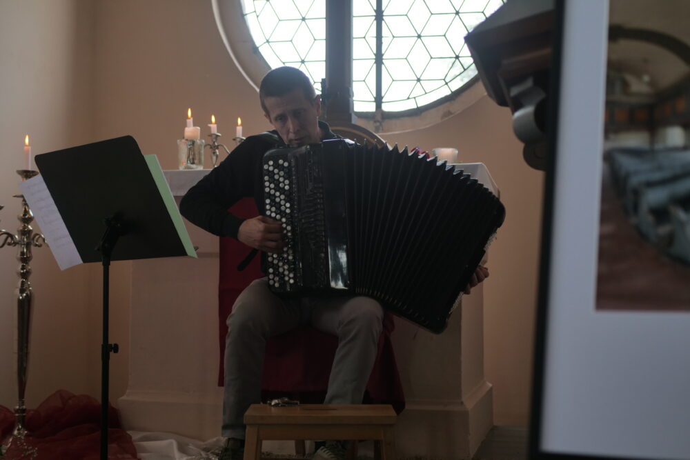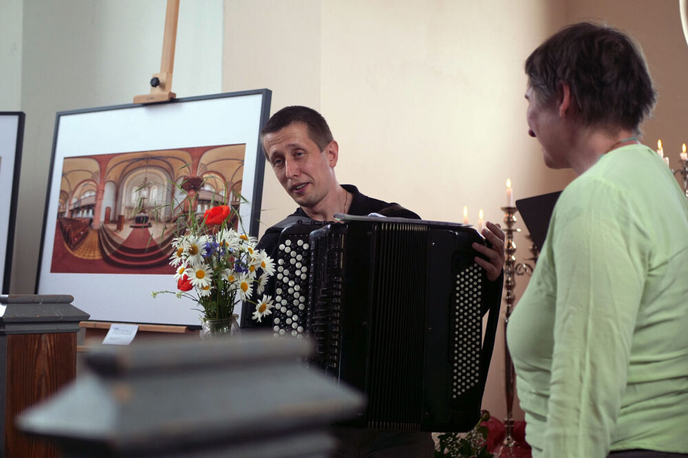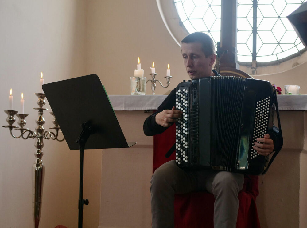 Der ukrainische Akkordeonist Andrij Lesunenko hat am Pfingstsonntag, 19. Mai 2024, ein Konzert in der Dorfkirche Leeskow (Gemeinde Jamlitz) gegeben. Er spielte Werk von Bach, Vivaldi, Albinioni, Rachmaninov und anderen Komponisten und begeisterte die Zuhörer mit seiner Virtuosität. Andrij Lesunenko lebt seit einigen Jahren mit seiner Familie in Cottbus. Er hat in der Ukraine Musik studiert und an der Hochschule Lausitz außerdem ein Studium als Musikpädagoge absolviert. So ist er auch als Musiklehrer in der Region bekannt. Einen Einblick in sein Repertoire geben CD-Veröffentlichungen.