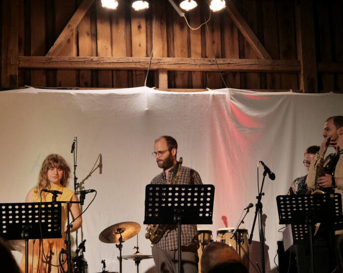 Das Matthias Spillmann Trio war am 5. Oktober 2024 im Saxstall Pohrsdorf zu Gast. Matthias Spillmann (trumpet, flugelhorn), Andreas Lang (double bass) und Moritz Baumgärtner (drums) stellten ihre aktuelle CD „Inviting Bill McHenry“ vor. „Die Besetzung aus Trompete, Bass und Schlagzeug stellt die Keimzelle des Jazz dar: Melodie und RhythmusWeiter lesen