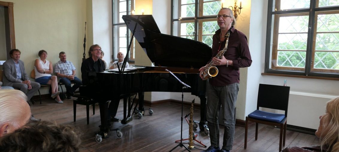 Detlef Bielke (Piano) aus Cottbus und Volker Schlott (Saxofone) aus Berlin haben am 2. Juli 2017 im Musiksalon auf Gut Geisendorf ein Konzert gegeben. Das ehemalige Herrenhaus liegt in Neupetershain (bei Cottbus) inzwischen direkt an der Rekultivierungsfläche des Tagebaus Welzow-Süd. Das Haus wird als Kulturforum der Lausitzer Braunkohle aktuell von der Leag betrieben. Es werden regelmäßig Veranstaltung, darunter Konzerte und Lesungen, angeboten (mehr unter www.lr-online.de).