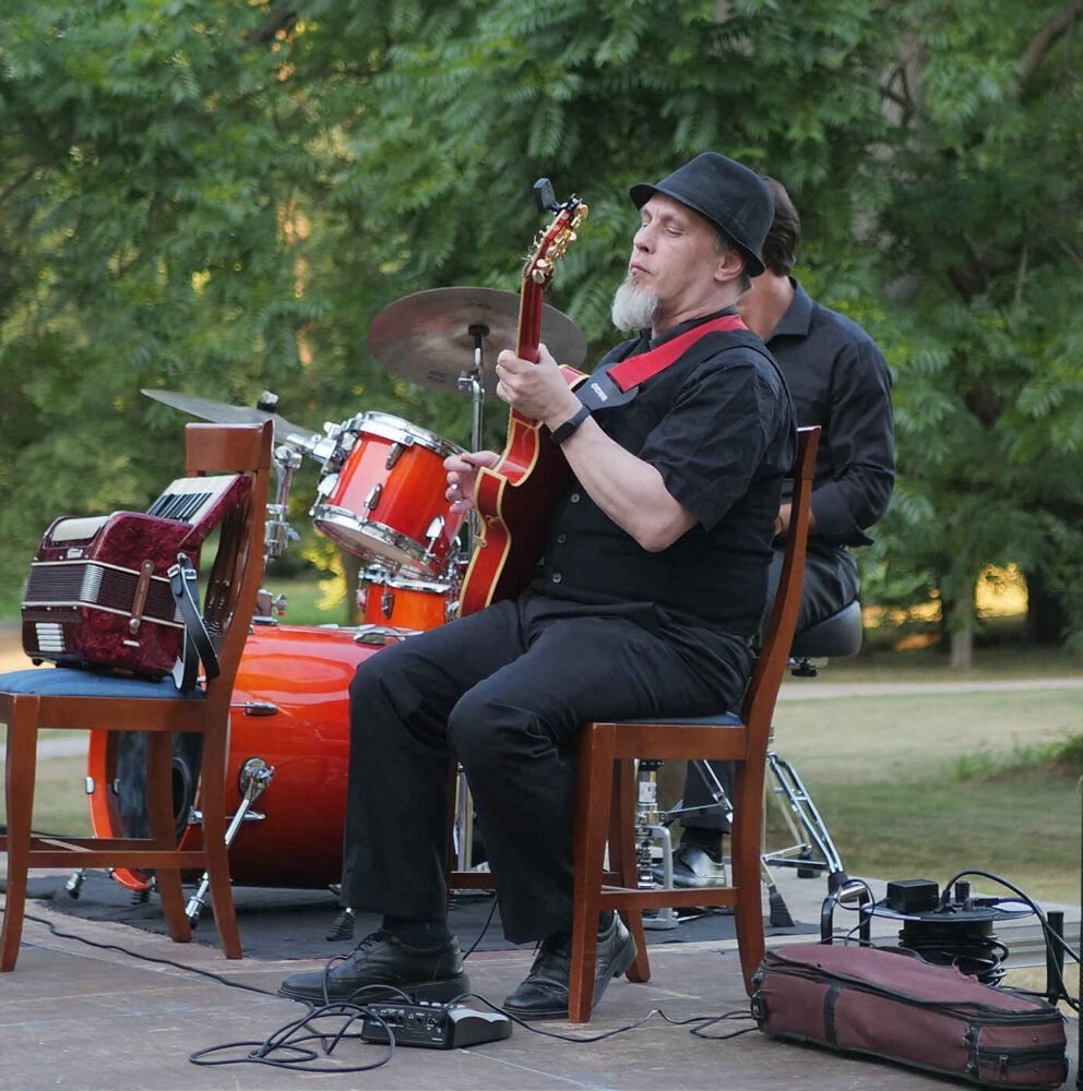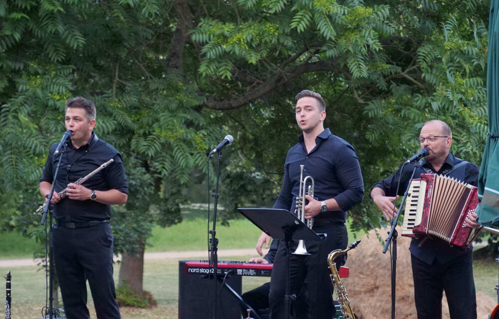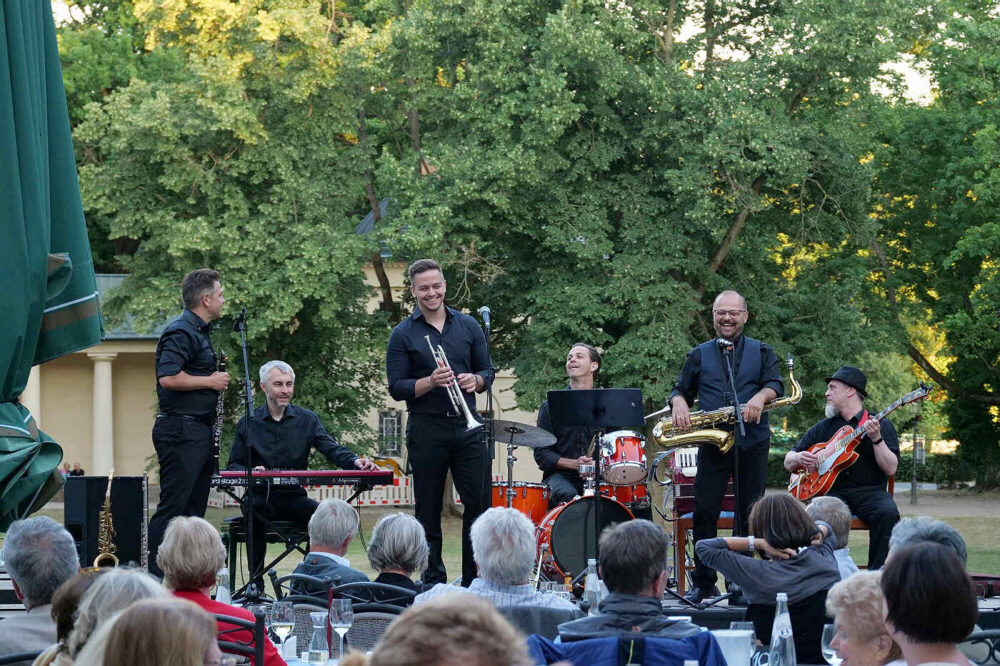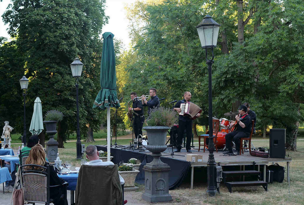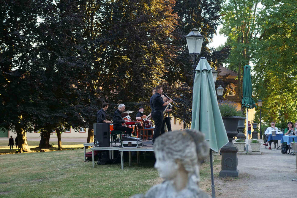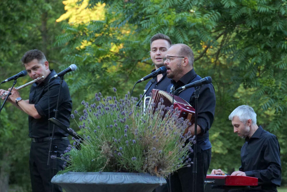 Und es ist Tradition, dass es vor dem Spreewald- und Schützenfest am ersten Juli-Wochenende in Lübbenau einen musikalischen Leckerbissen gibt – das Swingladen-Konzert als Open-Air-Veranstaltung auf der Schlossterrasse. Als gut gelaunter Gastgeber begrüßt Rochus Graf zu Lynar die Besucher. Er stellt die aus Berlin angereisten Musiker vor, die hier nicht unbekannt sind – die Familie Ginzburg, eine Klezmer-Band in der sechsten Generation. Nach 150 Jahren musikalischer Weltreise durch vier Kontinente ist die Ginzburg-Dynastie inzwischen wieder an ihren historischen Wurzeln und zurück in der alten Berliner Heimat. Selbstbewusst sagen die Musiker, dass sie im Herzen Europas gegenwärtig die einzige praktizierende Klezmer-Dynastie seien. Sie fühlen sich in der Berliner Philharmonie als Musiker genauso zu Hause wie im Spreewald. Im Jahr 2022 war das Jiddish Swing Orchestra schon einmal zu Gast in Lübbenau.