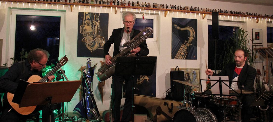 Das Bielefelder Trio Andreas Kaling (Bass-Saxofon), Reinhold Westerheide (Gitarre) und Barny Bürger (Perkussion) ist am 20. Januar 2019 im Saxstall in Pohrsdorf (Ortsteil der sächsischen Tharandt) zu Gast gewesen. Neben Eigenkompositionen von Westerheide und Kaling sind auch Stücke aus dem klassischen Gitarrenrepertoire in jazziger Interpretation vorgestellt worden. Eckhard Schleiermacher ist Hausherr und Veranstalter. Er verwies darauf, dass das Saxofon von mehreren Landesmusikräte (unter anderem auch Sachsen) zum „Instrument des Jahres 2019“ ernannt worden ist. Nach Terminvereinbarung gibt es auch Führungen durch die außergewöhnliche Saxofonsammlung, die in ihrer Vielfalt als Ambiente für Konzerte beeindruckt. Weitere Informationen unter: www.saxstall.de