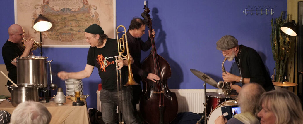 Freie improvisierte Musik traf am 7. November 2025 in Peitz auf kulinarische Performance bei „Meditation Nervous“ mit Willi Kellers (drums), Jan Roder (bass), Christof Thewes (trombone), Hartmut Oßwald (reeds) und Geoffroy Muller (performance/trumpet). Es war der Abschluss mit Willi Kellers als „Improviser in Residence“ – einem neuen Format der JazzwerkstattWeiter lesen