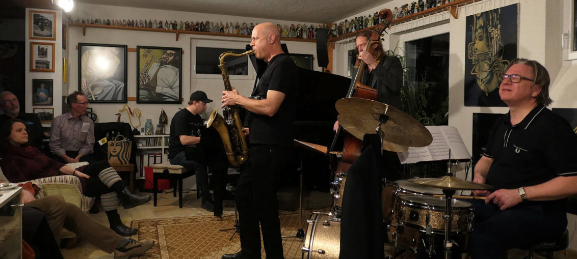 Mit dem Walt Weiskopf European Quartet gab es am 26. Januar 2020 im Saxstall Pohrsdorf ein Kontinente übergreifendes Musikertreffen. Der amerikanische Tenorsaxophonist hat mit den Dänen Carl Winther (Piano), Andreas Lang (Bass) und Anders Morgensen (Schlagzeug) sein aktuelles europäisches Quartett zusammengestellt. Die Tour führt zu Beginn des Jahres eben nicht nur nach Berlin in den Zigzag Jazzclub (24. Jan.) und ins norwegische Oslo (8. Febr.) , sondern auch in den Saxstall. Der Ruf des charismatischen Musikers war ihm vorausgeeilt und das Publikum der Einladung von Eckhard Schleiermacher gern gefolgt. Eine aktuelle CD hatte das Quartett auch im Köcher.